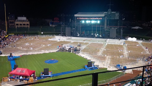 Ed started things back up with All the Way, a song he wrote for the Cubs. Afterwards the legendary Ernie Banks joined him on stage holding a baseball mitt that once belonged to a 5 year old Ed. It was a very touching moment to watch Ed with his idol in a place that held so many special memories for him. I was thankful for the screens so I could see the expressions on his face.